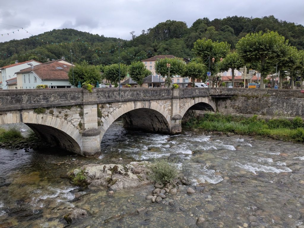 Je profite d’être à Seix au sec pour me dégourdir les jambes, et voir l’église St Etienne, le château (privé) et le pont. C’est joli.
