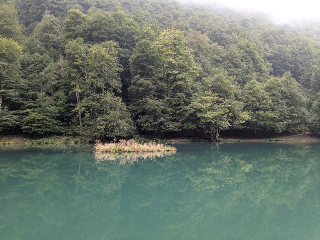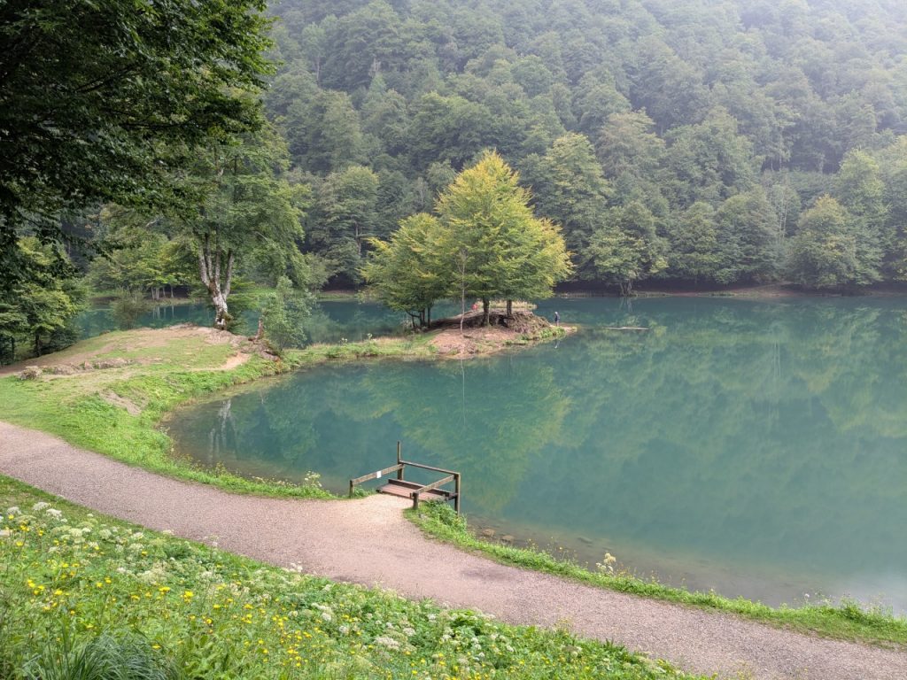 Je redémarre la succession de vallées au sec et cols humides, en me tapant un combo merdique parfait brouillard – pluie – gravillons sur plusieurs kilomètres. Quand je croise un panneau lac de Bethmale je me dis que c’est une bonne occasion pour souffler.