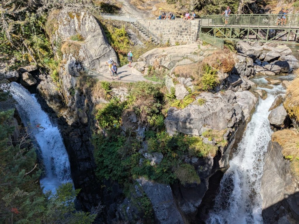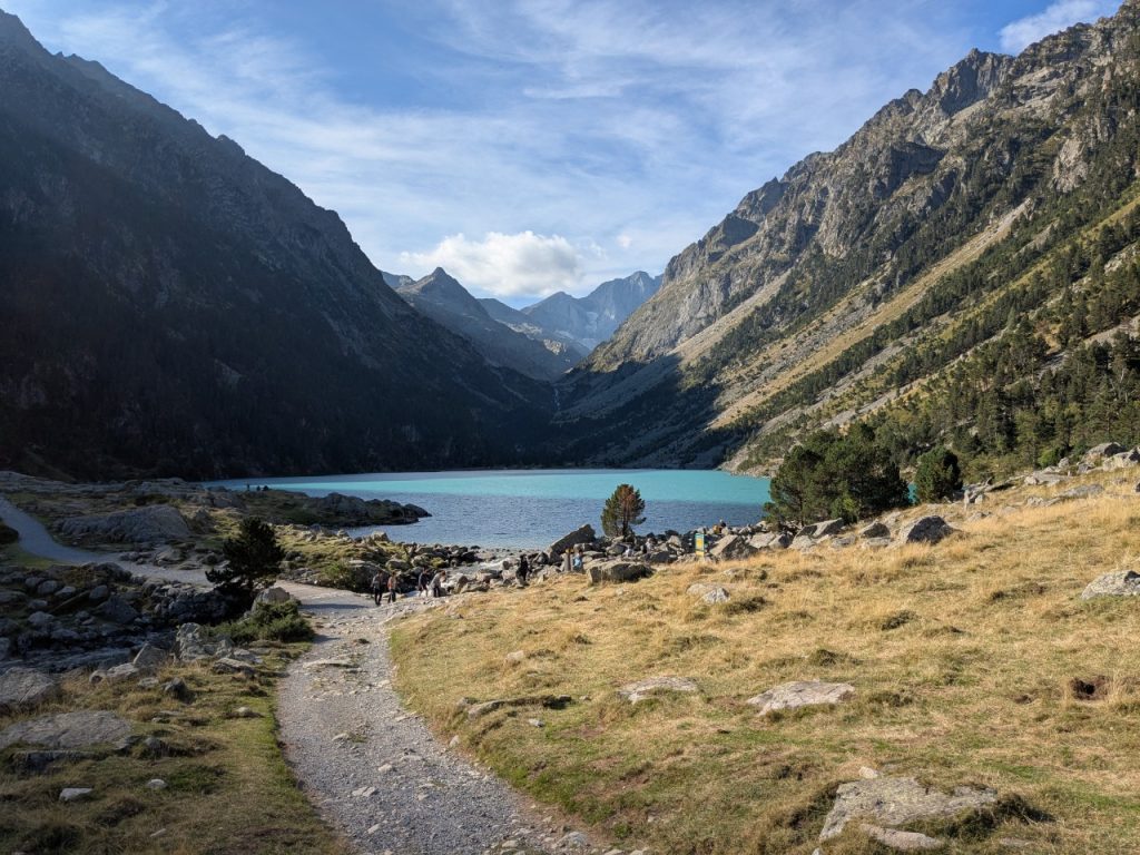 Je commence par un long détour voulu par Pont d’Espagne. Je ne sais pas trop à quoi m’attendre, j’ai juste noté que c’était un truc à voir. J’arrive sur l’immense parking payant, encore assez peu rempli car il n’est que 9h. Je vois des groupes de randonneurs, donc je me mets aussi en tenue de rando. Et je fais bien, car il y a une sympathique montée bien sportive pour aller au lac de Gaube.